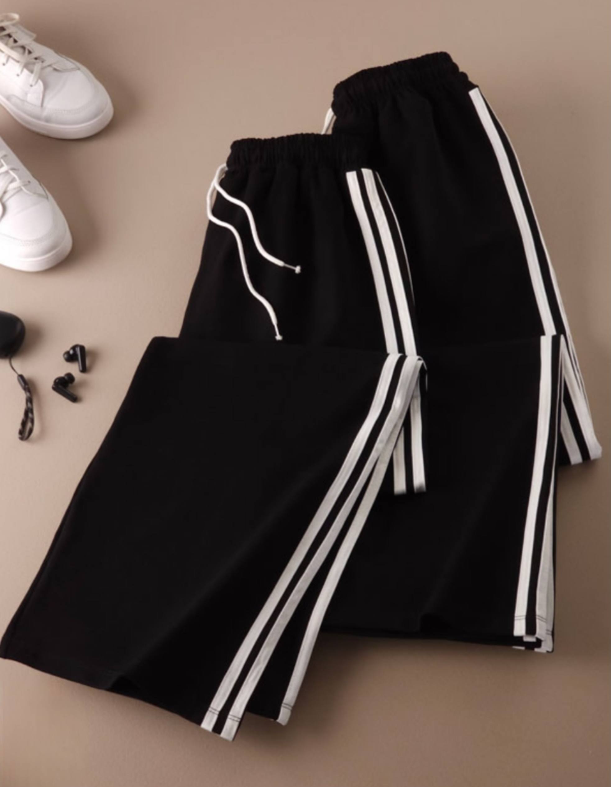 شلوار بگ بغل خطی سایز ۳۶ تا ۴۴ جنس گلکسی پنبه ورزشی / بیرونپوش ضمانت دوخت و کیفیت قد کار ۱۰۰ تک رنگ مشکی کمر کشی