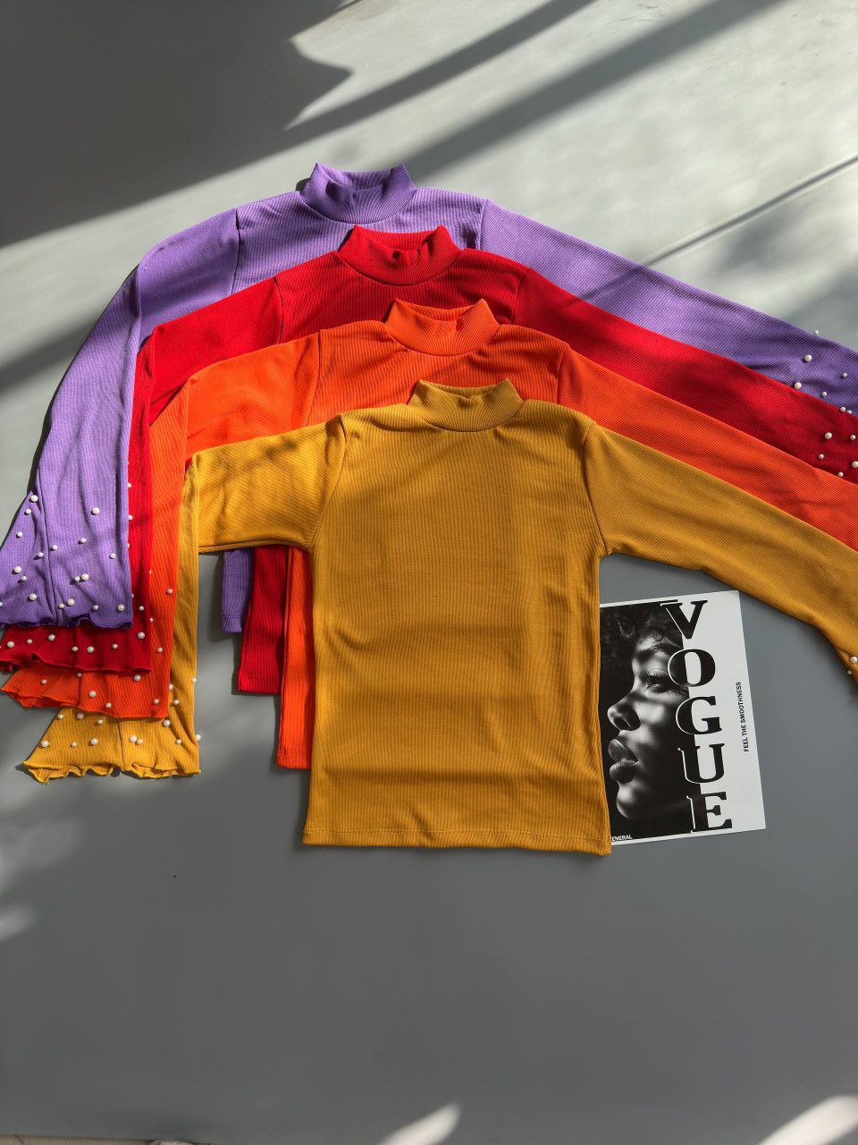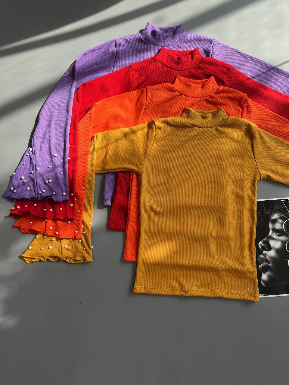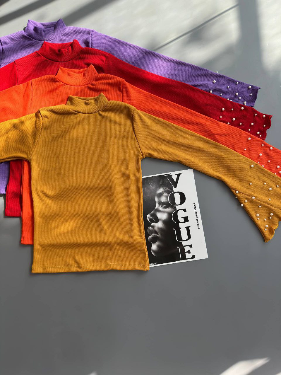 بلوز آستین کلوش یقه ۳ سانت مرواریدی مدل عروسکی 🧶جنس فانریپ کبریتی کش سایز ۳۶ تا ۴۶ 🌈در ۶ رنگ مشکی/سفید/خردلی/قرمز/نارنجی