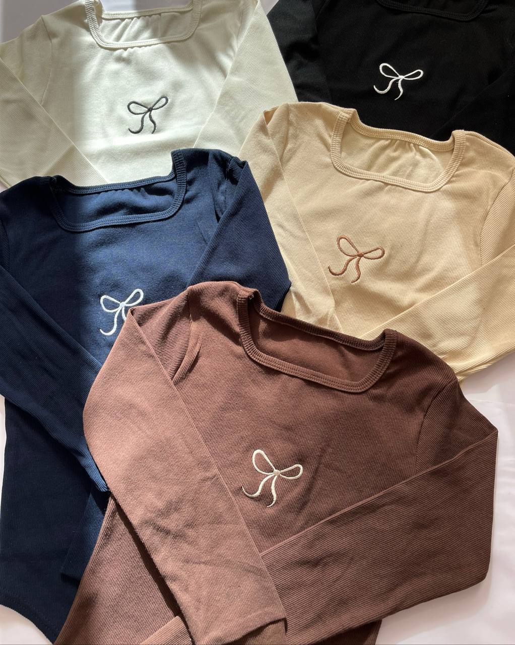 بادی یقه خشتی گلدوزی پاپیون زنانه