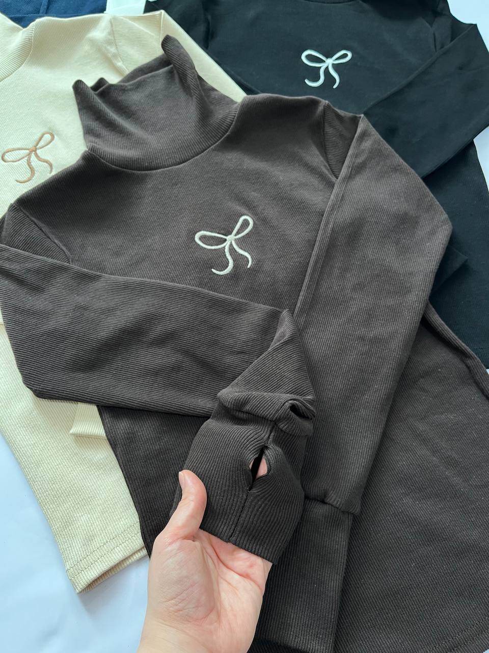 بلوز یقه اسکی گلدوزی پاپیون زنانه