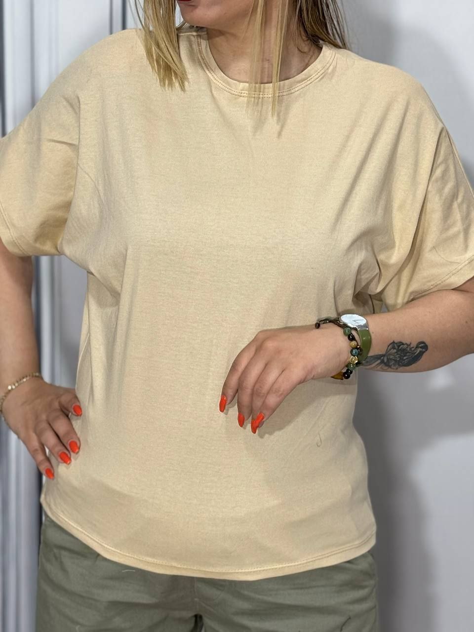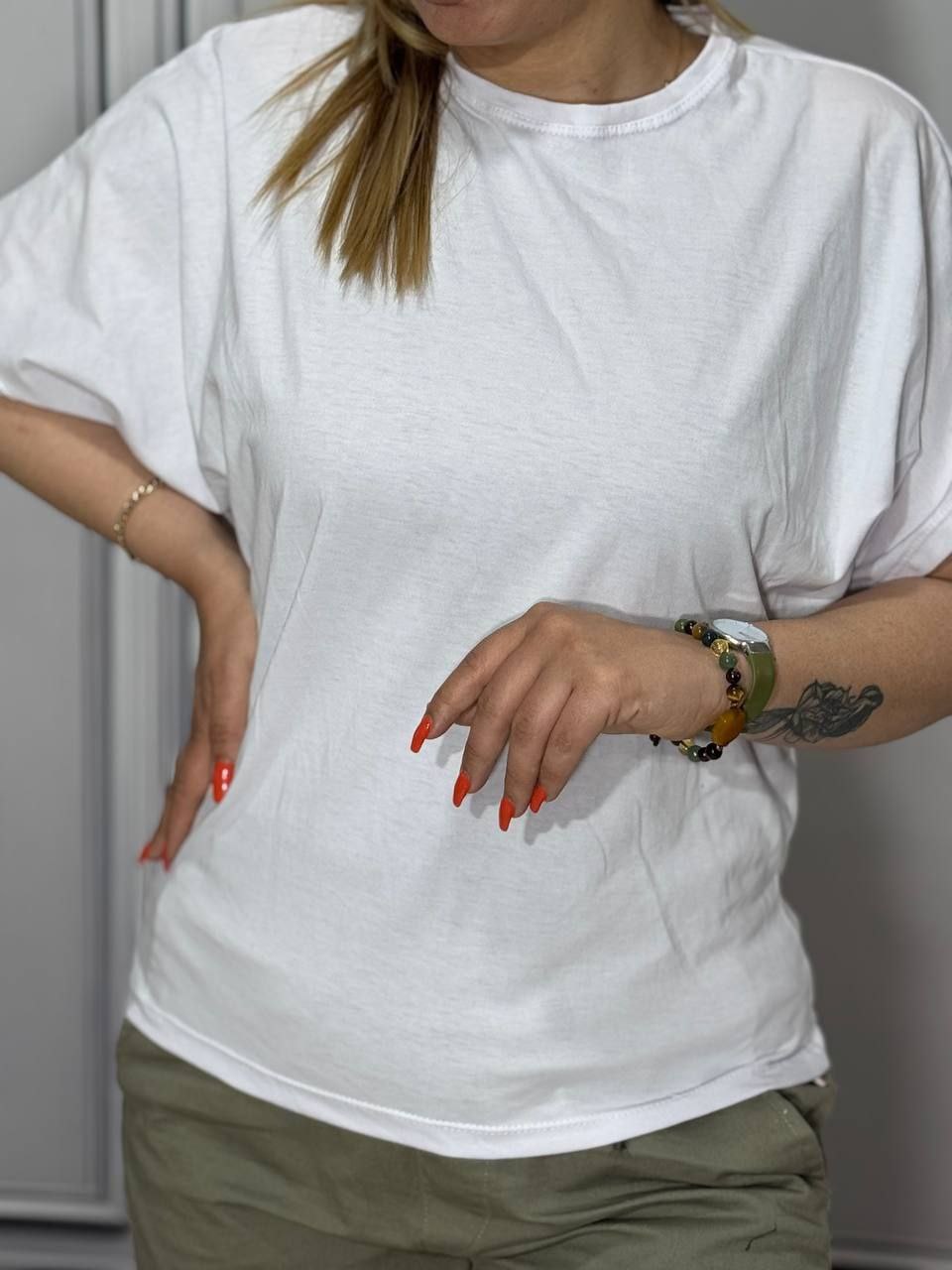 تیشرت آستین کیمونو جنس پنبه سوپر زیبایی در سادگی سایز 36 تا 46 قد 68 دور سینه 120 رنگبندی :سفید/کرم/هلویی